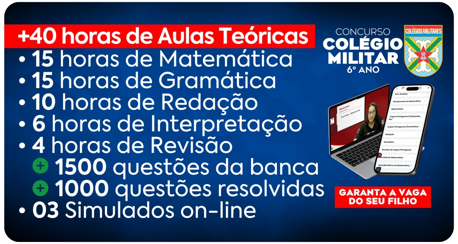 👉 Garanta agora a preparação que pode transformar o destino dele e abrir as portas do Colégio Militar do Exército.
