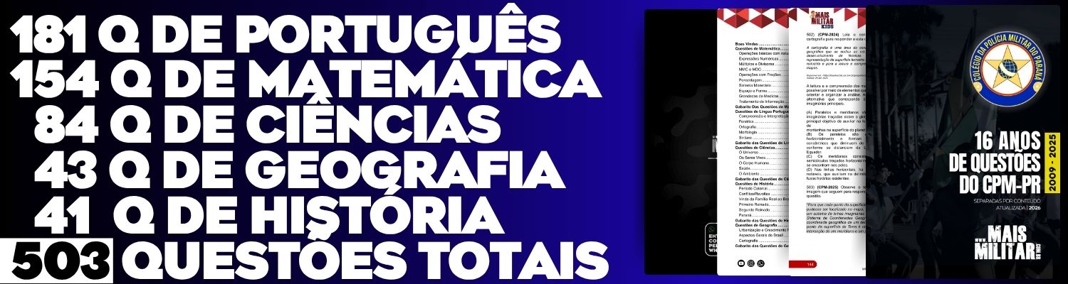 Com a nossa Apostila Digital Atualizada em 2026, o seu filho(a) terá em mãos o mapeamento exato das provas dos últimos 16 anos de todos os 7 Colégios da Polícia, do Paraná. É o treinamento certo para quem não quer perder tempo e conquistar a vaga.