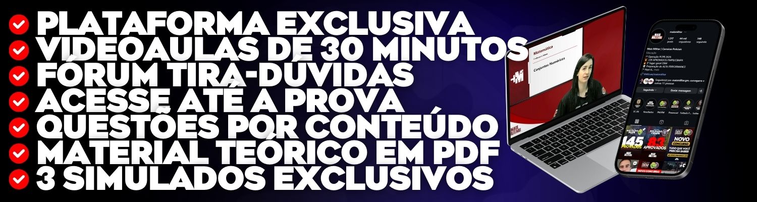 💻 A plataforma do Mais Militar pode ser acessada por qualquer aparelho com acesso à internet, a qualquer momento do dia, sem limite de uso diário.